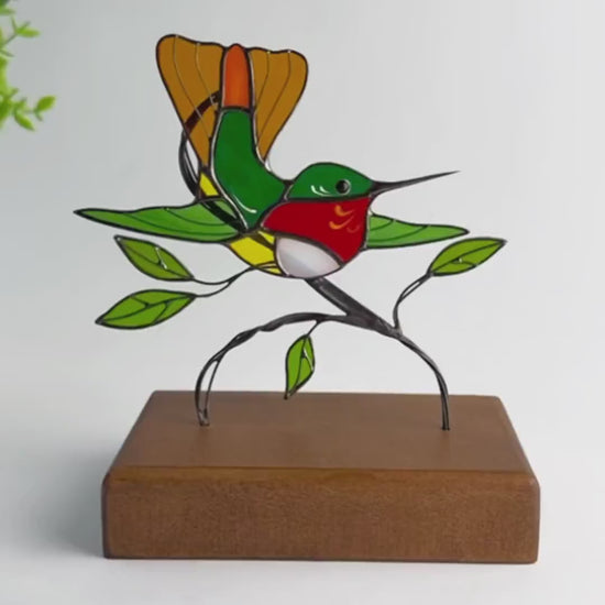 Custom stained glass hummingbird panel